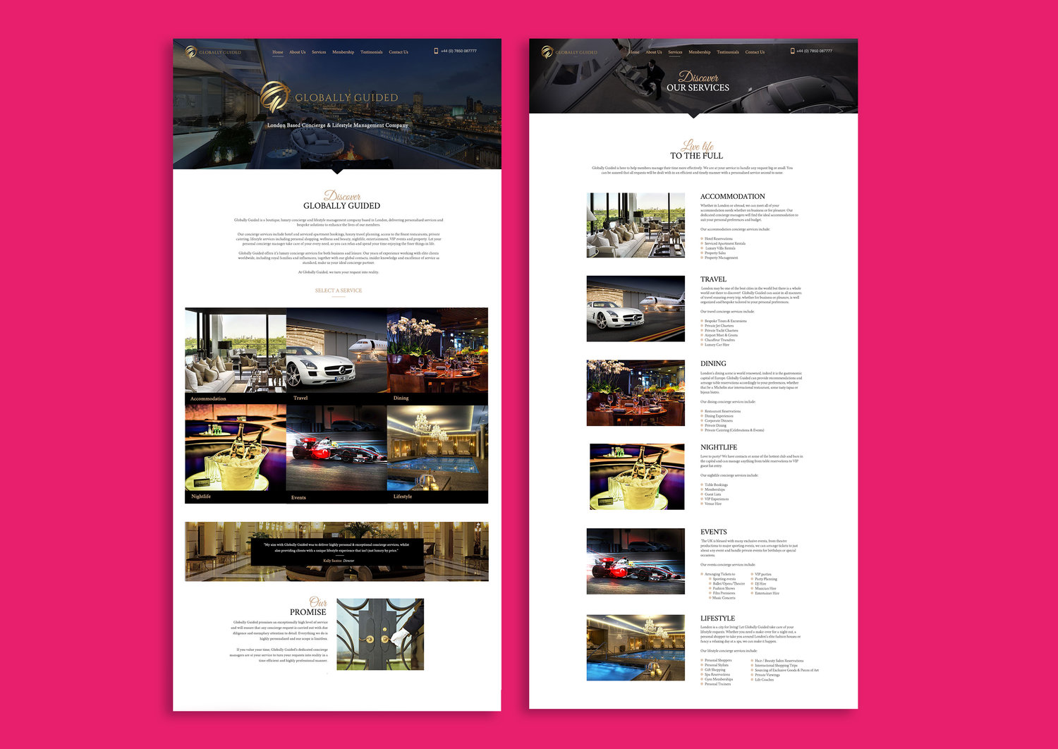 Branding and Website for Globally Guided. A boutique, luxury concierge and lifestyle management company based in London, delivering personalised services and bespoke solutions to enhance the lives of their members.